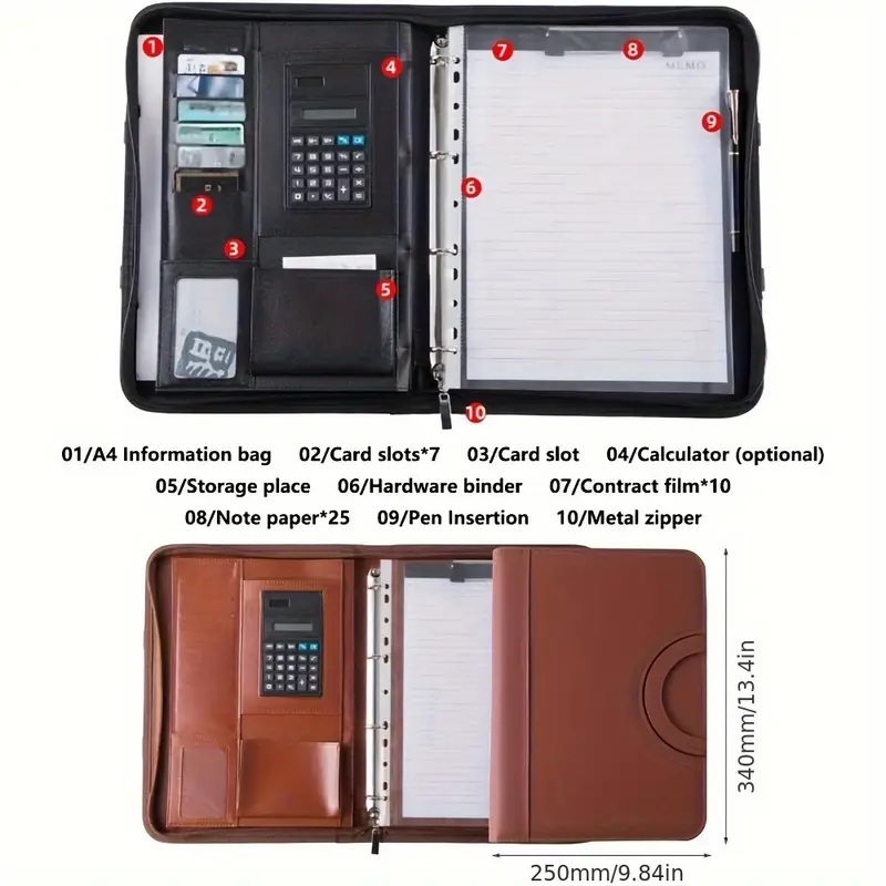 A4 Multifunctional PU Document Folder With Calculator Notepad