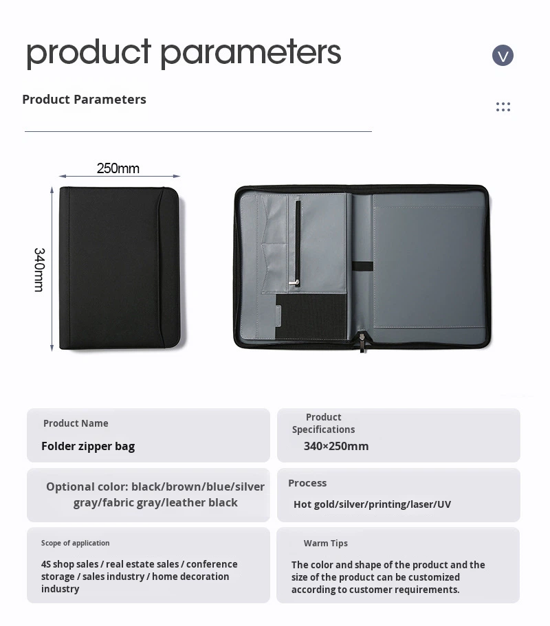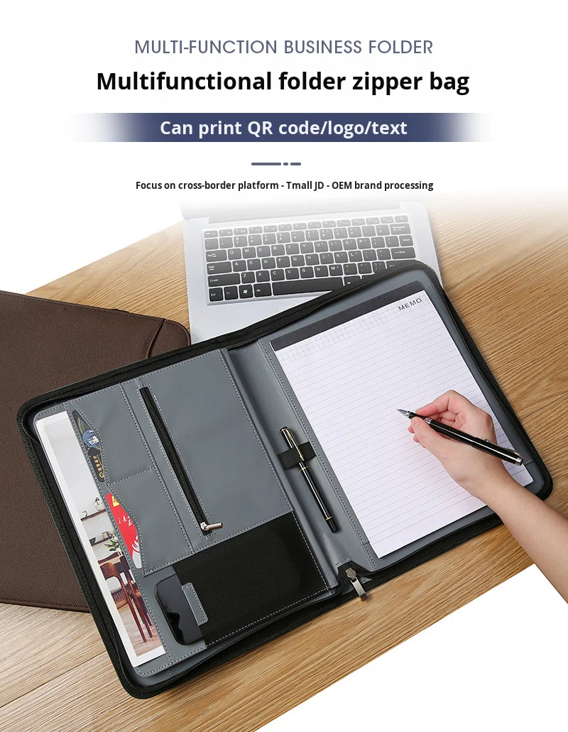 Custom A4 PU business portfolio zipper bag for meeting gift